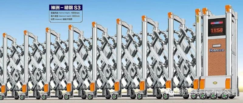 4、在运行时,禁止车辆或行人在门头处阻挡,虽然伸缩门有防撞装置,但为了引起不可知故障,应避免出现上述情况。安保人员在操作伸缩门开关时,应该注意观察门口情况,避免发生意外。