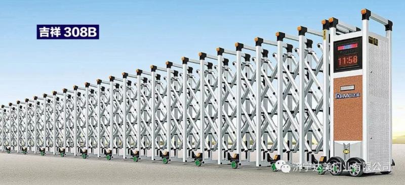 吉祥308B电动伸缩门所有电线采用高新性能材料表面耐寒抗养化,不仅在炎热的夏天90℃时不受影响能正常使用,而且寒冷的冬天在零下50℃时仍然可以正常使用。吉祥308B电动伸缩门全新显示屏外观设计,美观大方,由高亮度LED和8X8点阵模块组成,其主要功能可以显示中英文广告字及日期时间,可存储500个16X16点阵字符,显示内容可以随意更换。